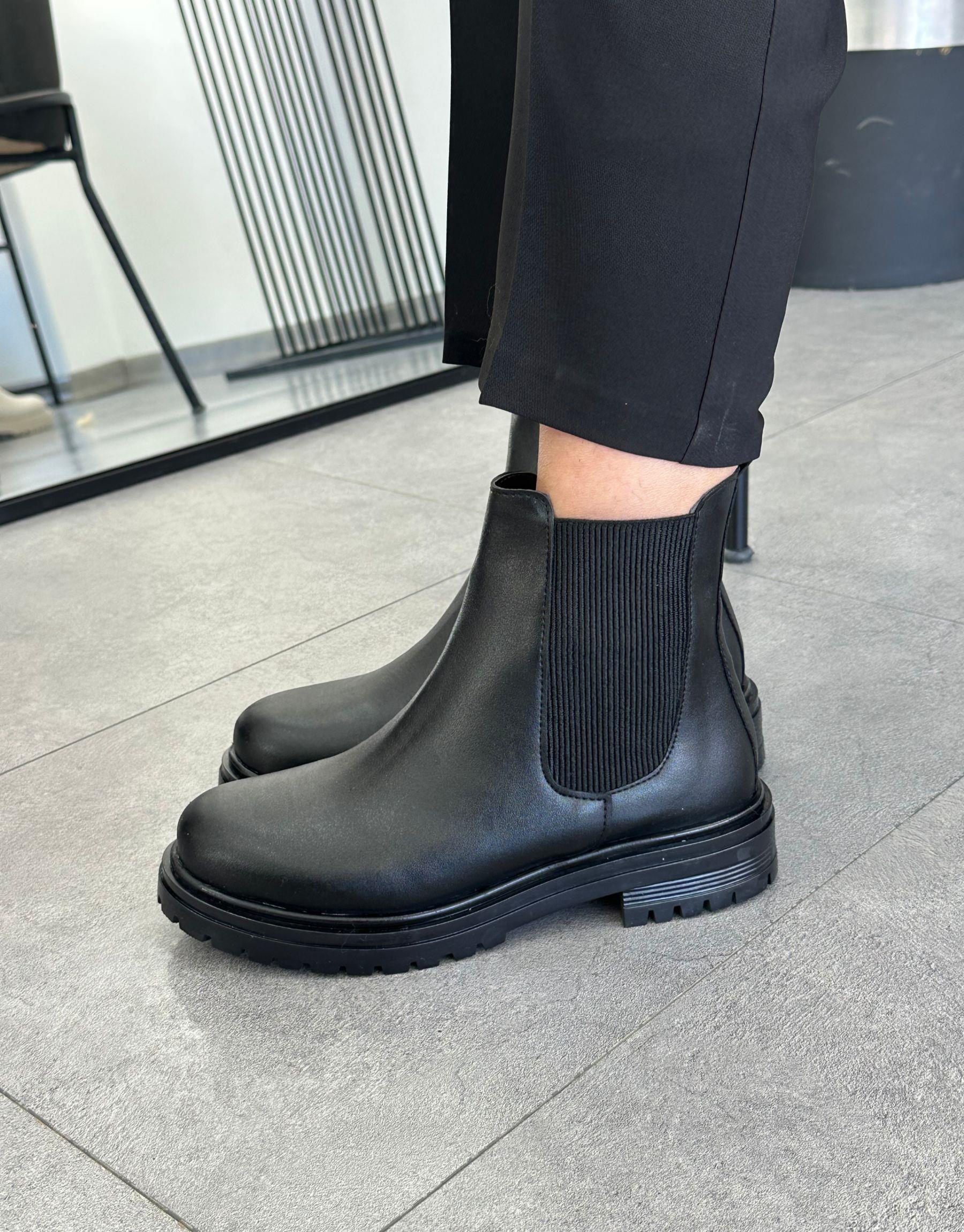 Kaddi Ön Küt Burun Yan Fermuar Detay Streç Kadın Bot Siyah