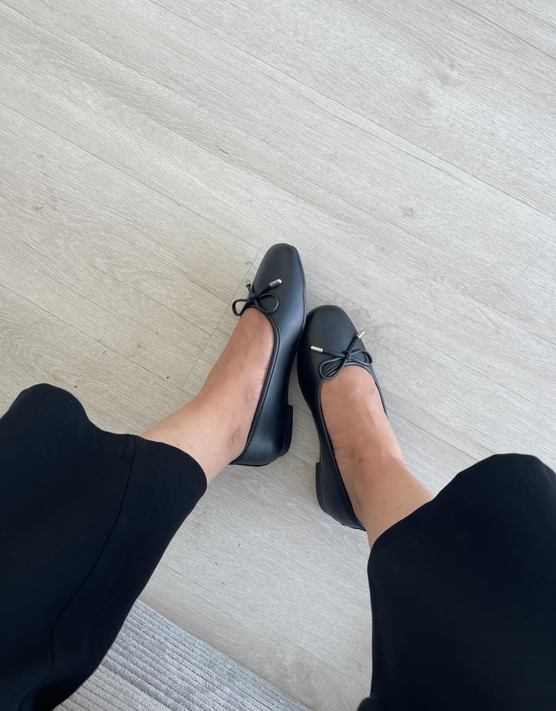 Bayan Siyah Jaylin Oval Burun Ön Kurdele Detay Kadın Babet Bej Deri | Fambella