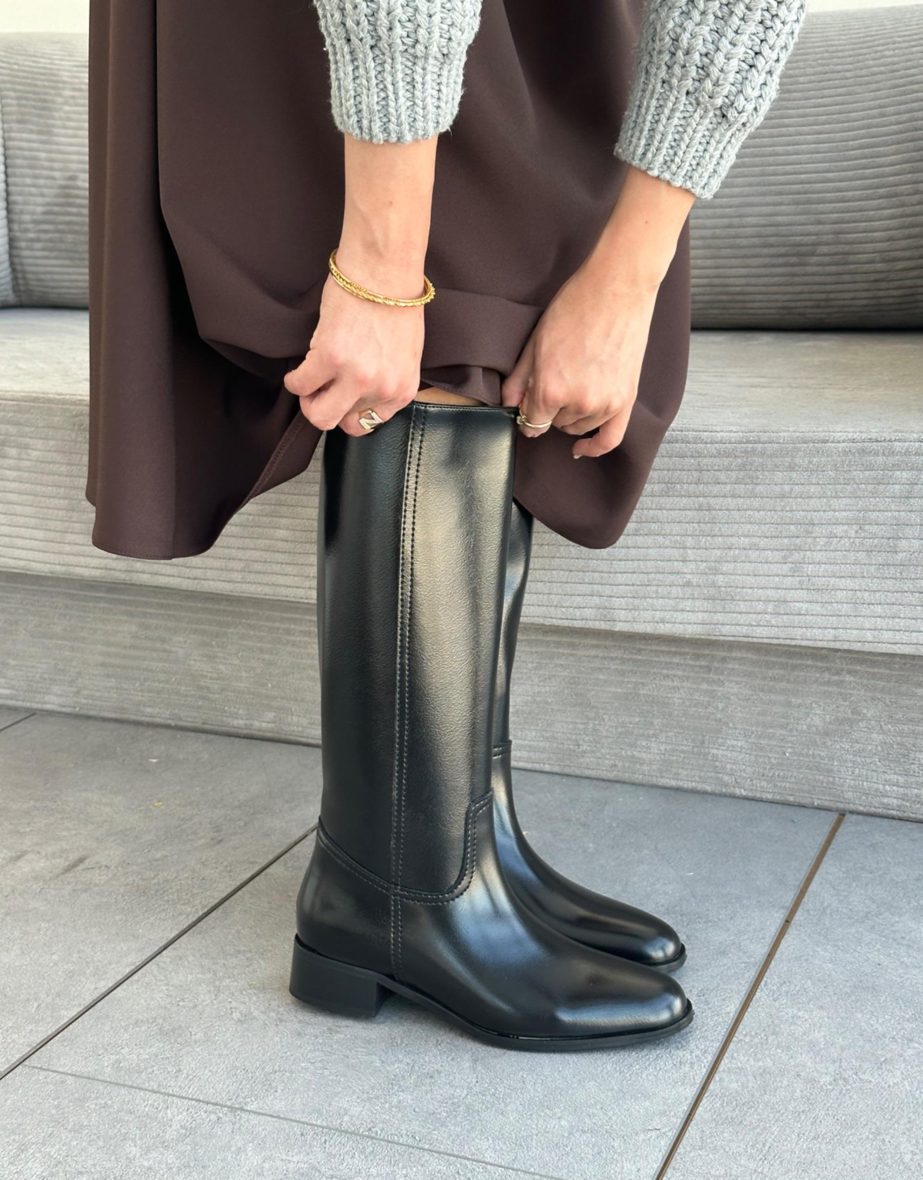 Bayan Siyah Lena Küt Burun Kadın Çizme | Fambella