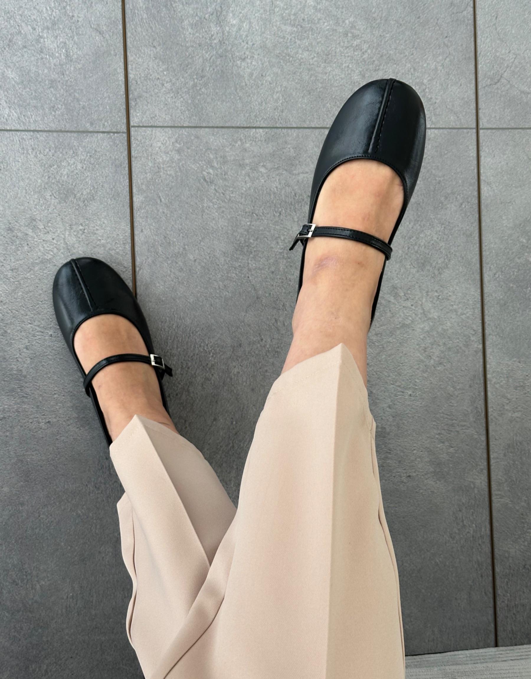 Bayan Siyah Paney Yuvarlak Burun Atkı Detay Kadın Babet | Fambella