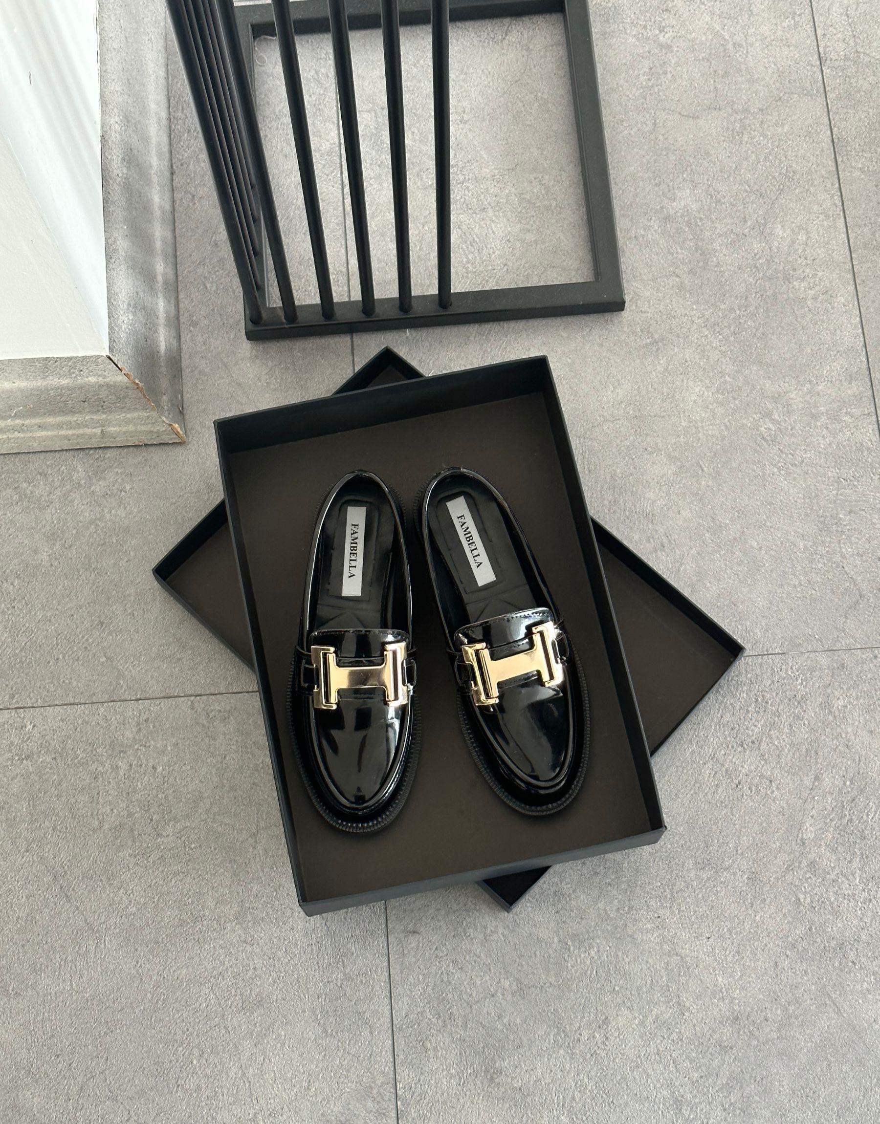 Bayan Siyah Rugan Dragov Oval Burun Ön Gold Aksesuar Detay Kadın Loafer | Fambella