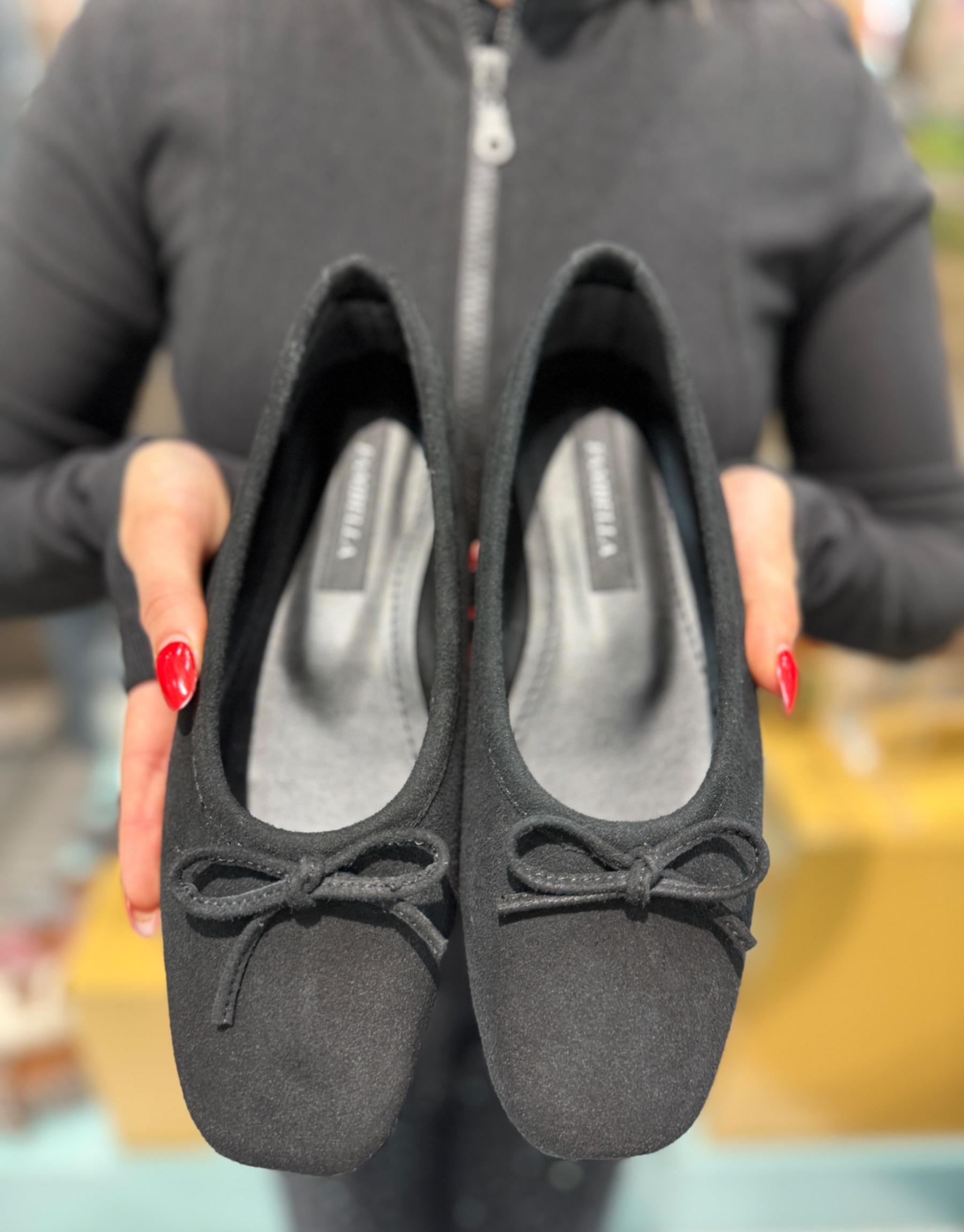 Bayan Siyah Süet Ayma Küt Burun Fiyonk Detay Kadın Babet | Fambella
